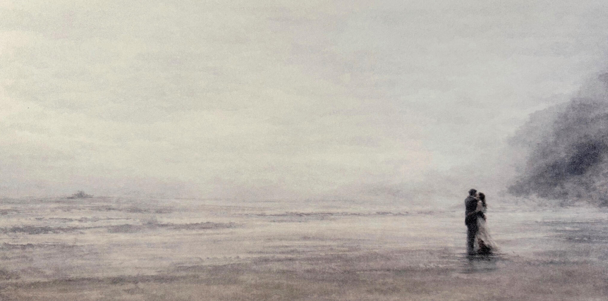 As with many of my works, I am fascinated by the relationship between an infinitely massive universe and its relatively microscopically small protagonists. And how relationships at their most meaningful to those involved are essentially meaningless to the larger environment. So the title is both realistic (to the couple) and ironic (to uncaring nature). The theme was an interest of Turner and here I've followed his impressionism, if slightly less abstractly. A challenge was to make the romantic couple as small as possible without them disappearing altogether.