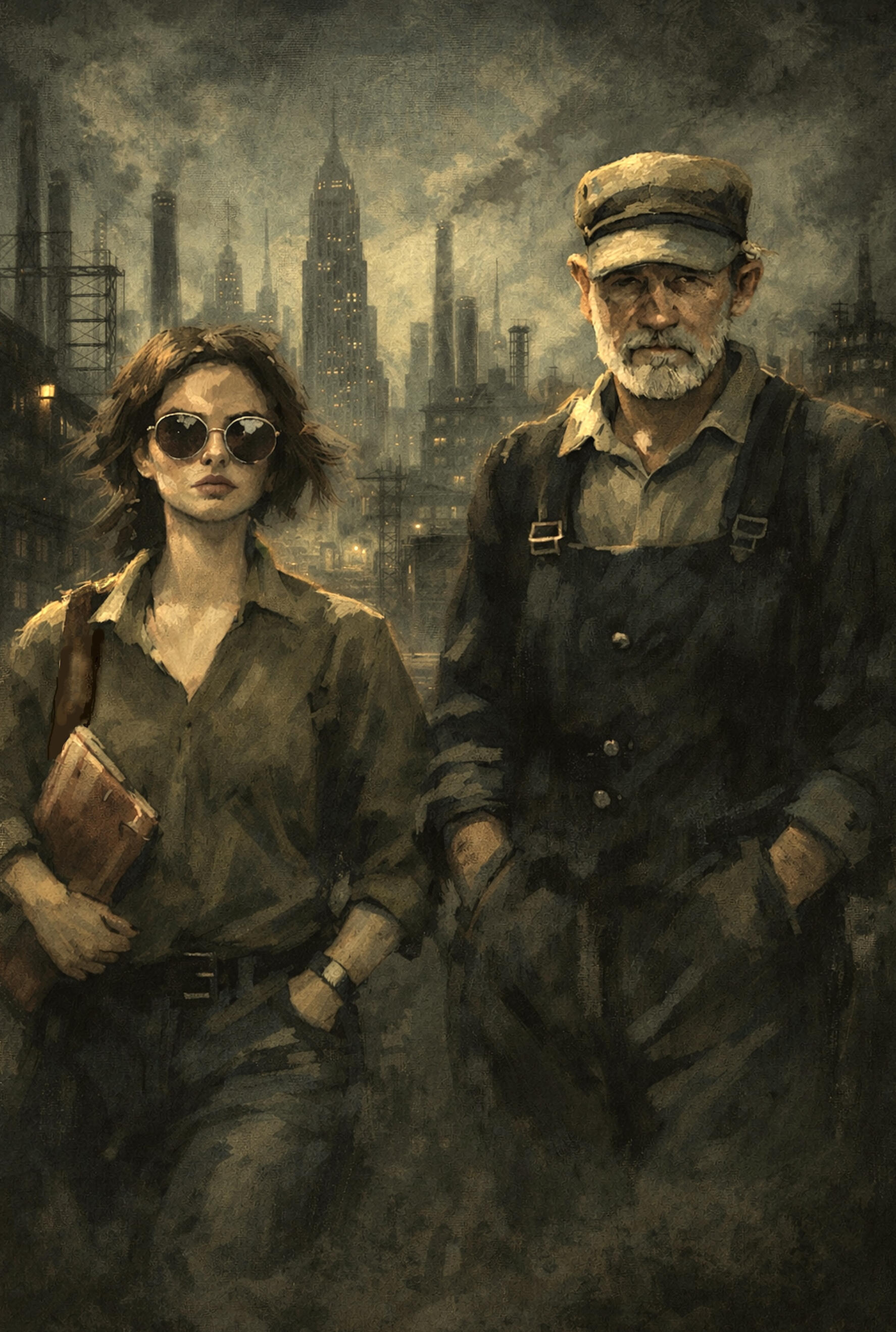 At the centre of this piece are two figures of quiet but implicit strength - woman and father walking forward with purpose through an industrial landscape, looking like they know exactly what they’re all about. I wanted a kind of Metropolis, Ayn Rand vibe - industry, ambition, individualism, belief in human capability. The work is entitled "Family" - that's what it is really about, and the special bond between father and daughter.