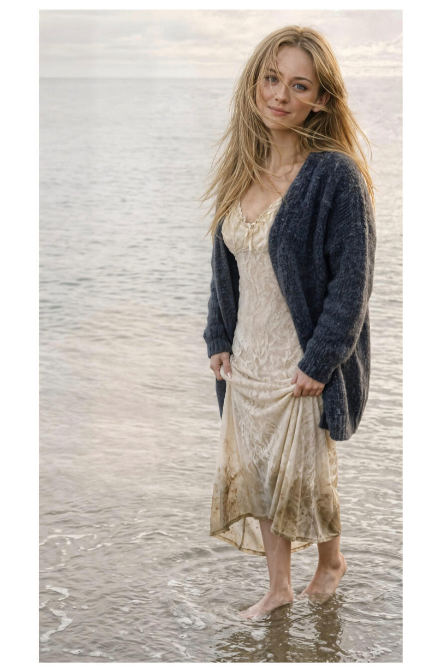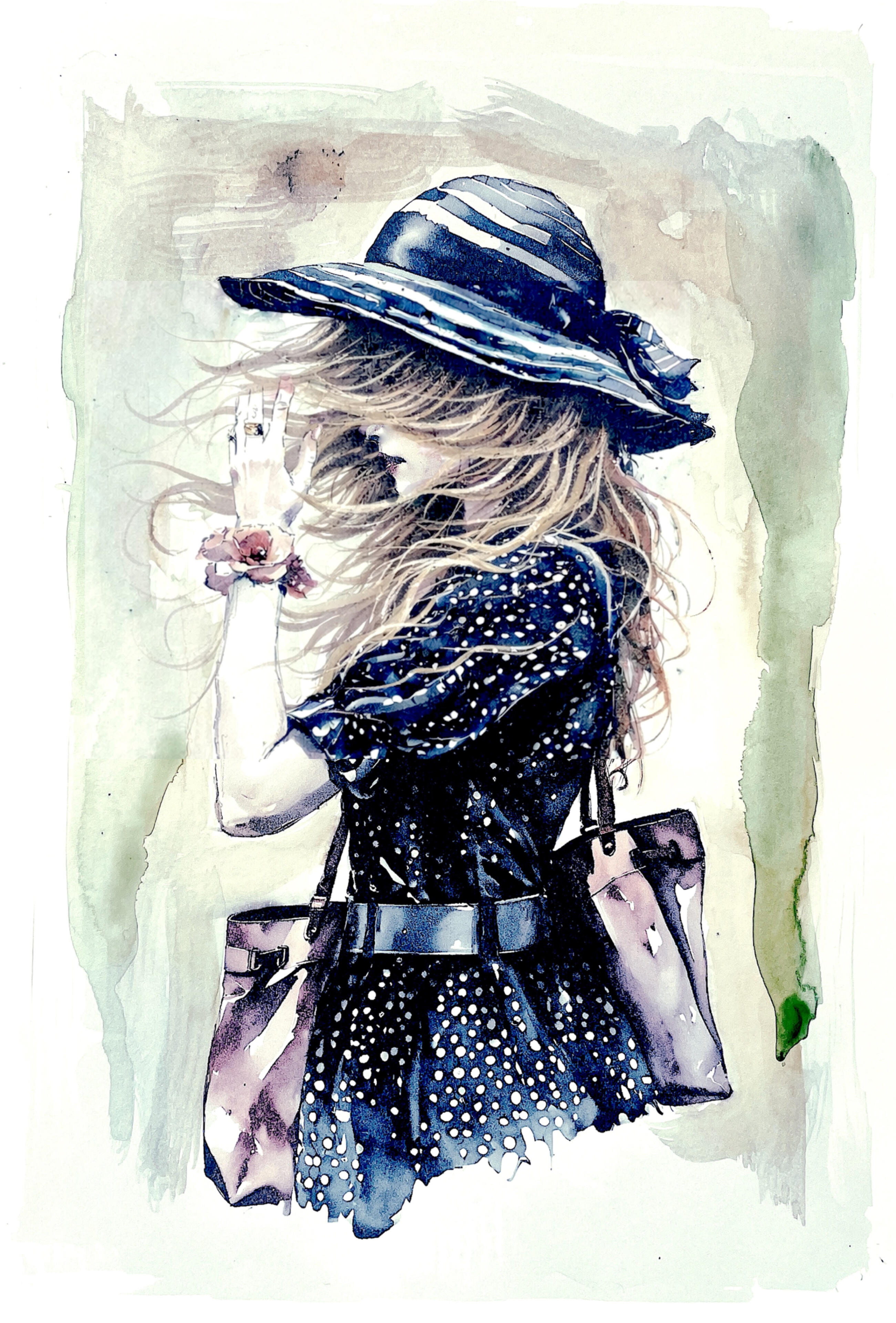 This image was inspired by a painting I saw from the German artist Lovis Corinth of a woman in a hat wading in the sea and holding her skirt out of the water. That particular action has a particular semiology that I wanted to recreate in this digital print.