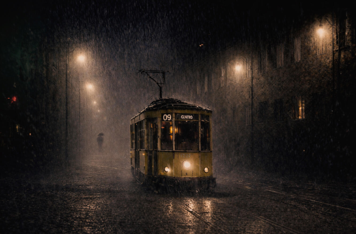 This image began as a photograph I took in Milan - a street-life scene with a yellow tram. I wanted to push the idea further and create a more cinematic, Euro, noir, "Third Man" mood - something that might sit naturally within a graphic novel style.